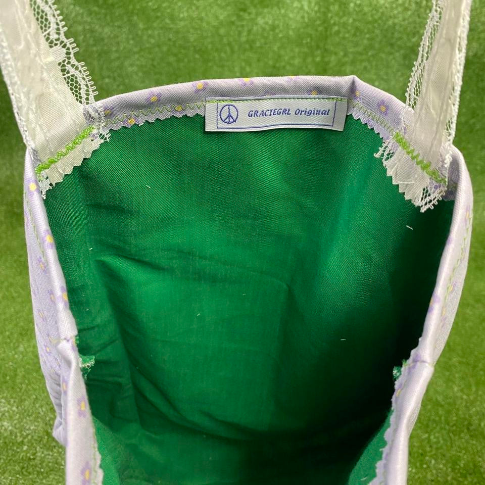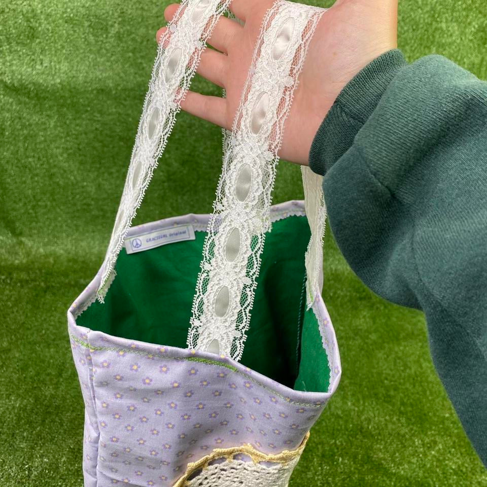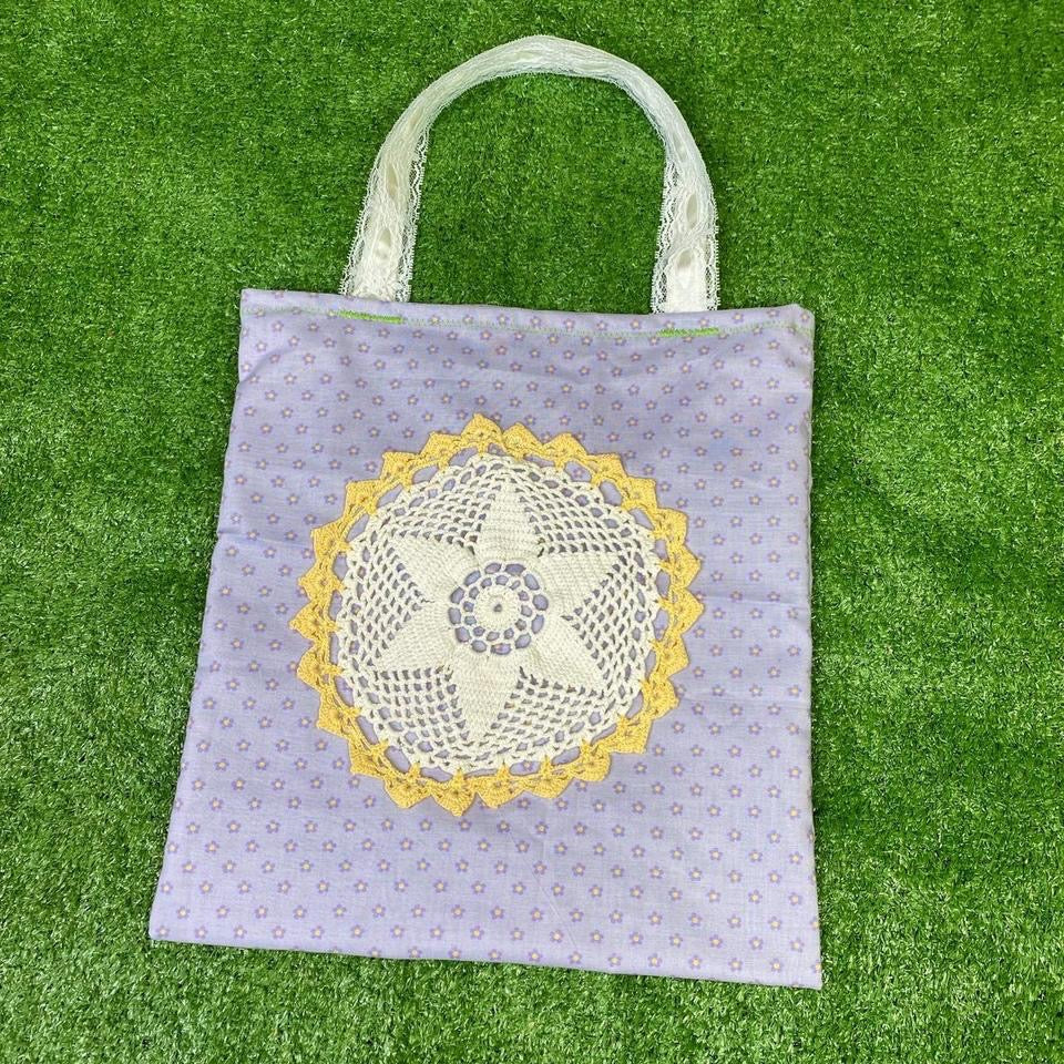 Beautiful crochet doily detail on the center of bag and white lace straps