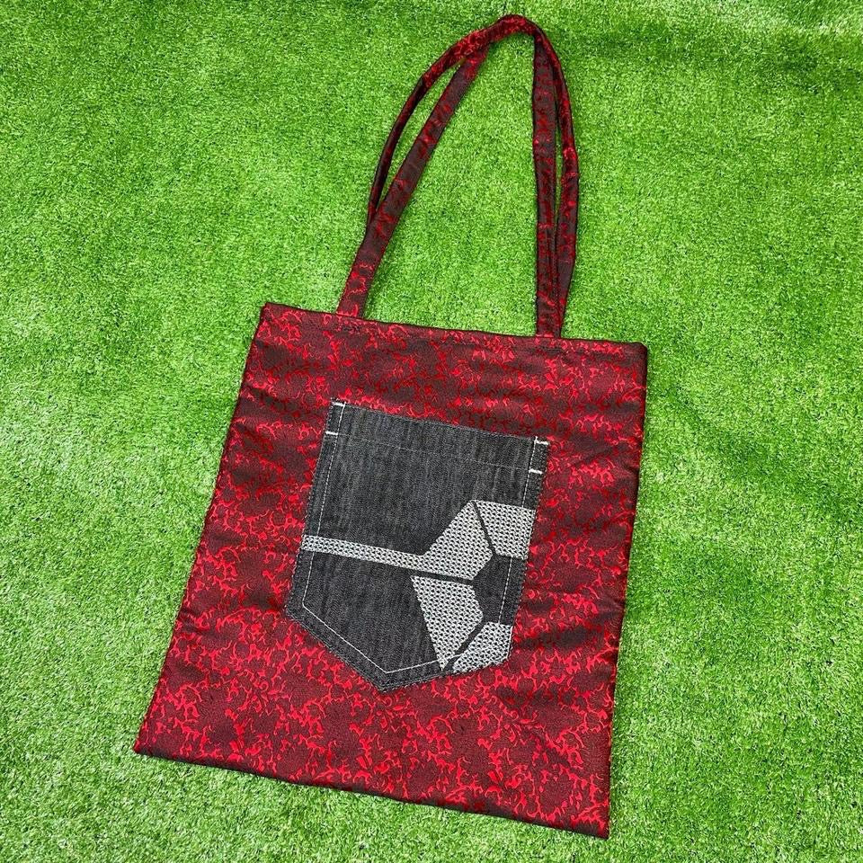 Cute black denim pocket detail ( upcycled from a pair of jeans )